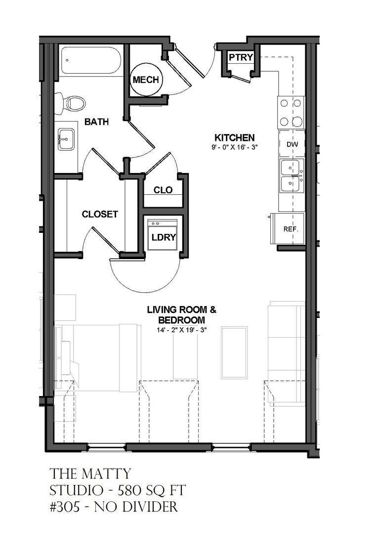 Welcome home to Heritage East- This apartment is The Matty layout, featuring an open concept studio, 580 sq feet, available for a 12 month lease starting November 17, 2025. This well-designed 1-bathroom, studio apartment features an open concept kitchen that leads into the combined living area and sleeping area. The apartment features granite countertops, stainless steel appliances, on-trend gray plank-like flooring, freshly painted white walls, and washer/dryer in the unit.
