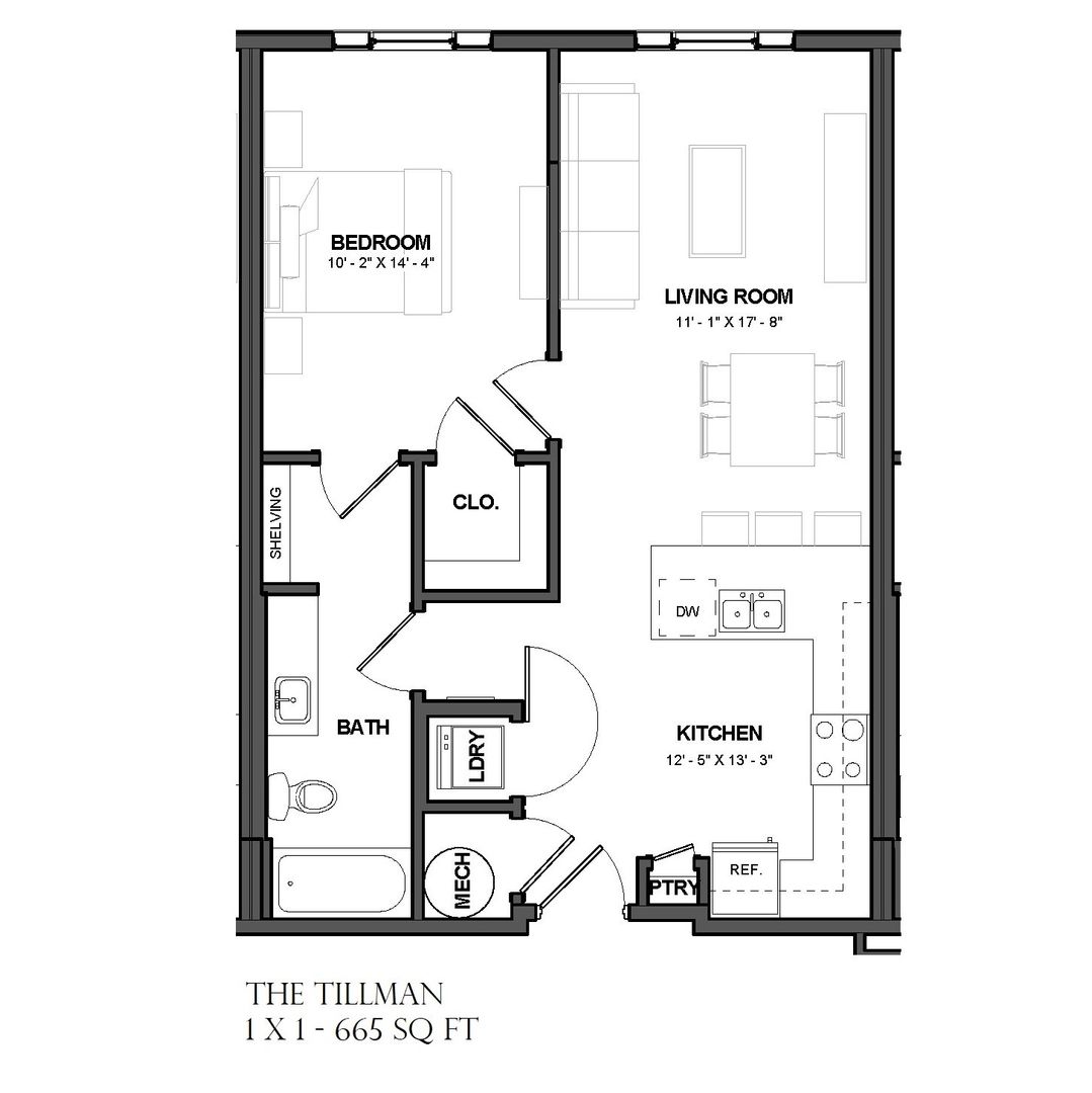Welcome home to Heritage East- This apartment is The Tillman layout, featuring 665 sq feet, 1 bedroom with 1 bath available for a 12 month lease starting November 5, 2025. This well-designed 1 bedroom apartment features an open concept kitchen that leads into the combined living area and sleeping area. The apartment features granite countertops, stainless steel appliances, on-trend gray plank like flooring, freshly painted white walls, and washer/dryer in the unit.